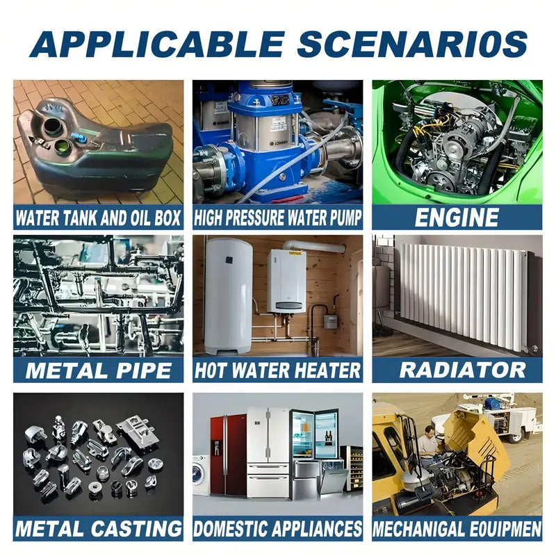 High and low temperature resistant, suitable for repairing all metal surfaces, steel, pump, water tank, fuel tank, engine, household appliances, machine, etc.