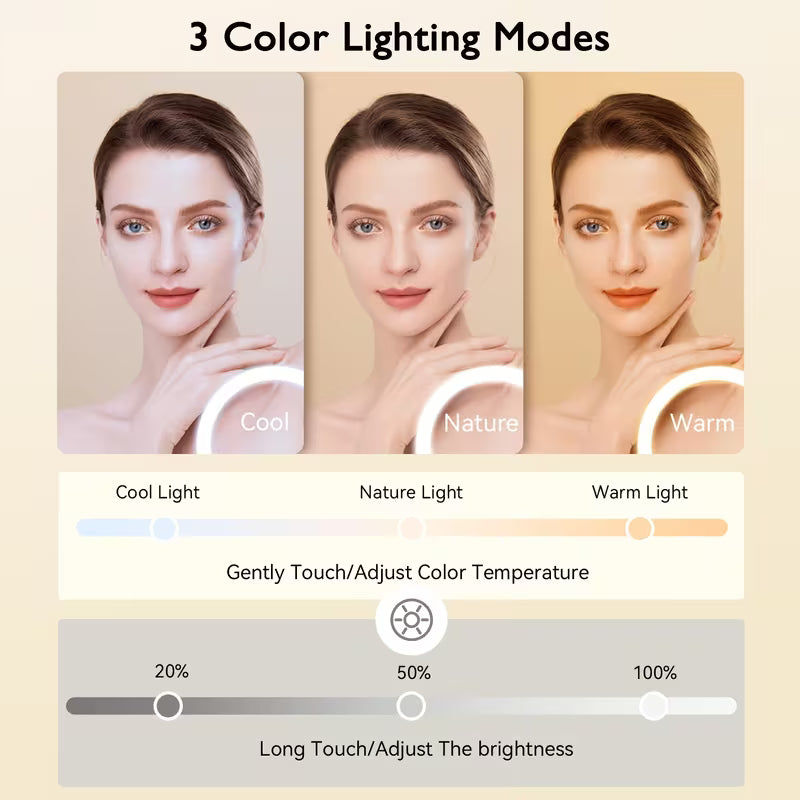 Choose the perfect lighting for ANY situation — soft warm glow, natural daylight, or cool brightness for flawless makeup application!